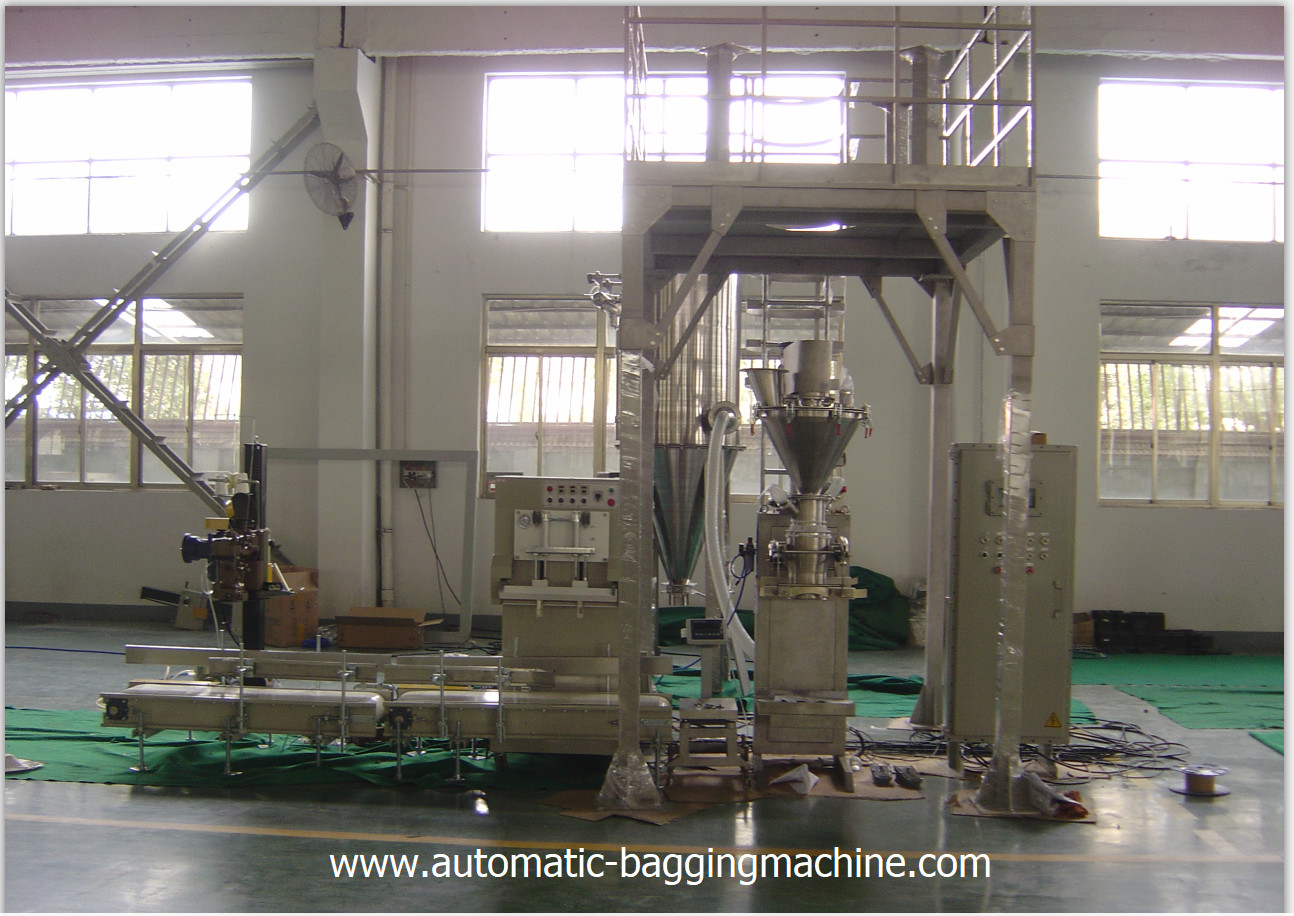 Elektronische verpackende Skala besteht aus Wägeeinrichtung, der Nähmaschine und übermittelt Gerät, Druckluftanlage, Entstaubungssystem, quantitative verpackende Steuerung, wird etc. der ganze wiegende Prozess durch PLC gesteuert und abgeschlossen automatisch.