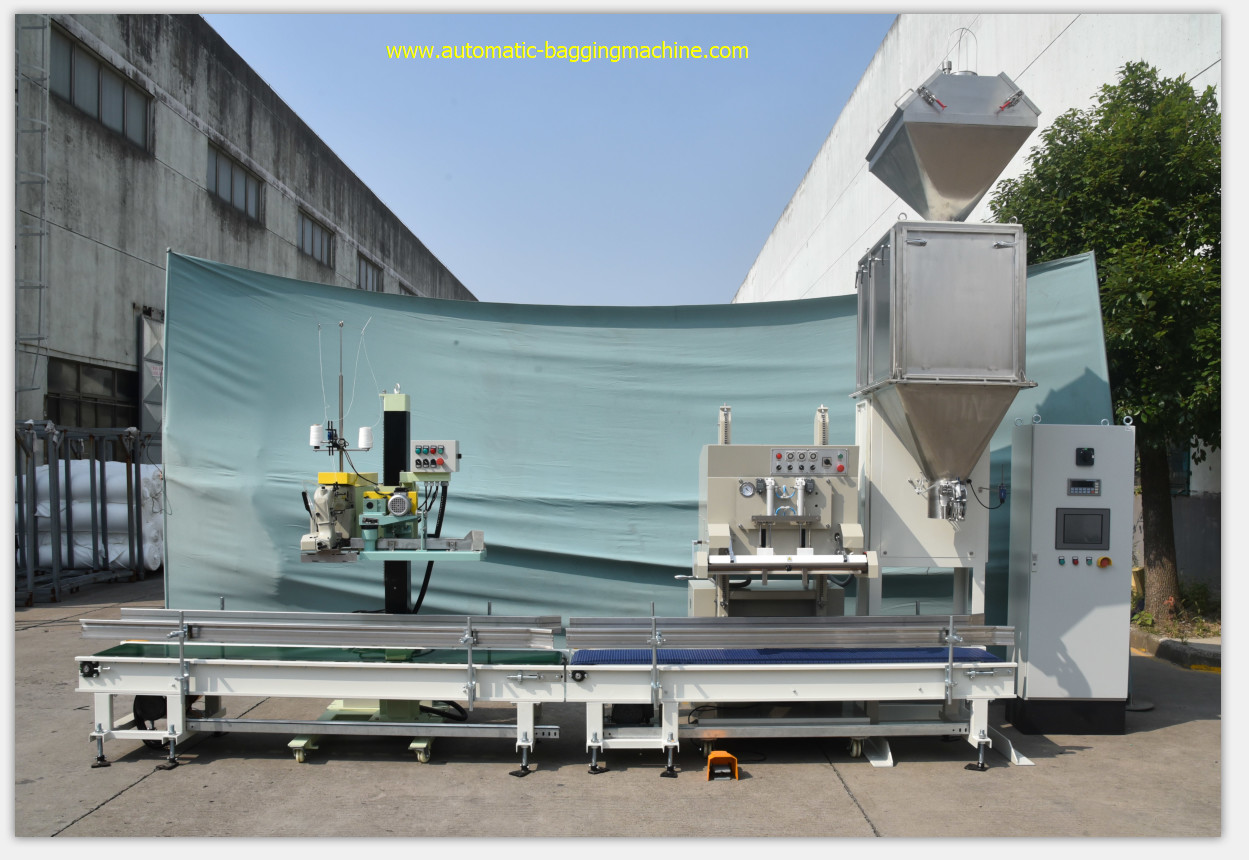 Elektronische verpackende Skala besteht aus Wägeeinrichtung, der Nähmaschine und übermittelt Gerät, Druckluftanlage, Entstaubungssystem, quantitative verpackende Steuerung, wird etc. der ganze wiegende Prozess durch PLC gesteuert und abgeschlossen automatisch.