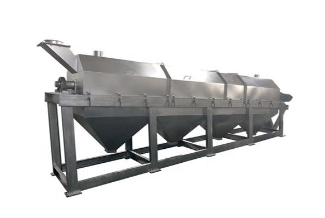Eine grobe Zufuhr (sagen Sie von einem Vorbrecher), wird am oberen Ende des Graubären eingezogen. Große Klumpen rollen und schieben zum untereren Ende (Endstückentladung), während die kleinen Klumpen, die Größen weniger haben, als die Öffnungen in den Stangen durch das Gitter in einen unterschiedlichen Kollektor fallen.
